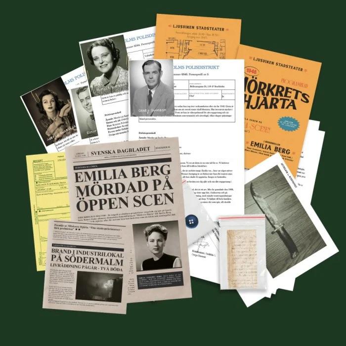Teatermordet är en del av Unsolved Mysteries-serien och erbjuder en verklighetstrogen upplevelse där du och dina vänner förvandlas till detektiver. Stig in i Ljusvikens teater och ta på dig detektivhatten för att lösa det brutala mordet på den rikskända skådespelerskan Emilia Berg, som blev mördad mitt under en pågående föreställning år 1948.