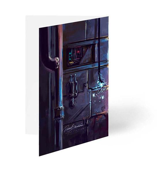 Gratulationskort. Födelsedagskort med kuvert. Motiv: Robot i neonstad.