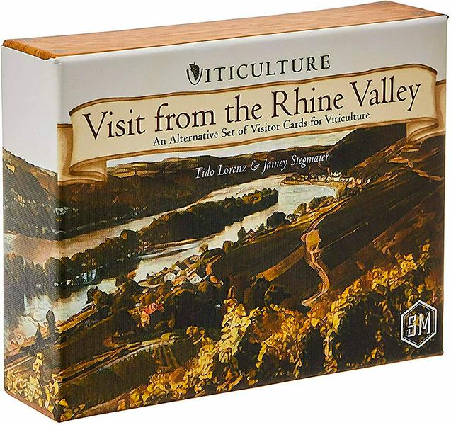 You have new visitors! Visit from the Rhine Valley, an expansion for Viticulture, provides you with a new set of eighty visitor cards, which focus less on victory points and more on the wine business itself. These cards have their own unique backs as they must be played without other visitor cards from Viticulture, Tuscany, and Moor Visitors.