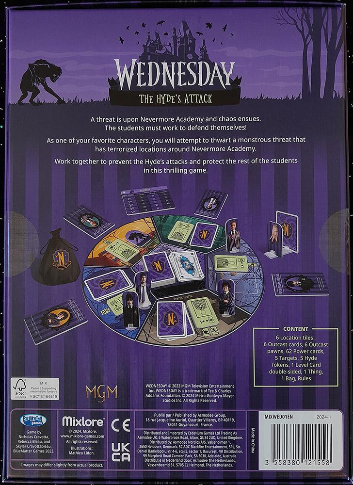 Wednesday - nu som kortspel! Ett hot skymtar över Nevermore School och kaos uppstår. Eleverna måste försvara sig. Arbeta tillsammans för att förhindra Hydes attacker och skydda de andra eleverna.