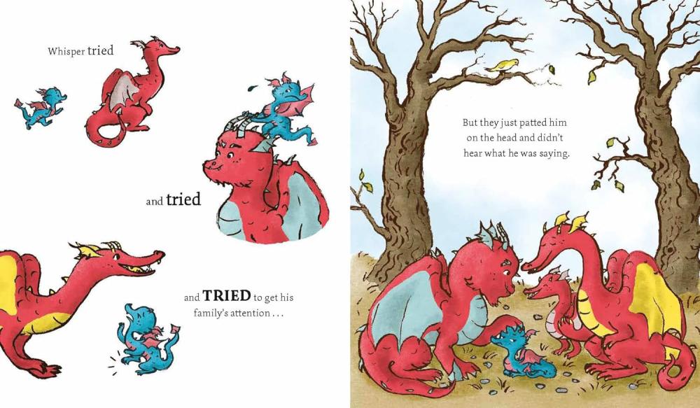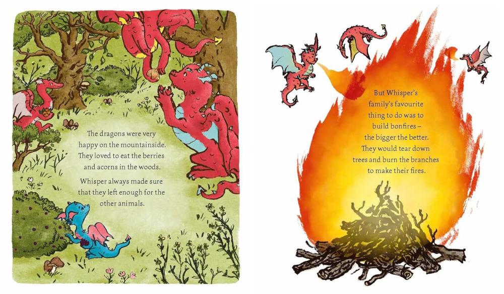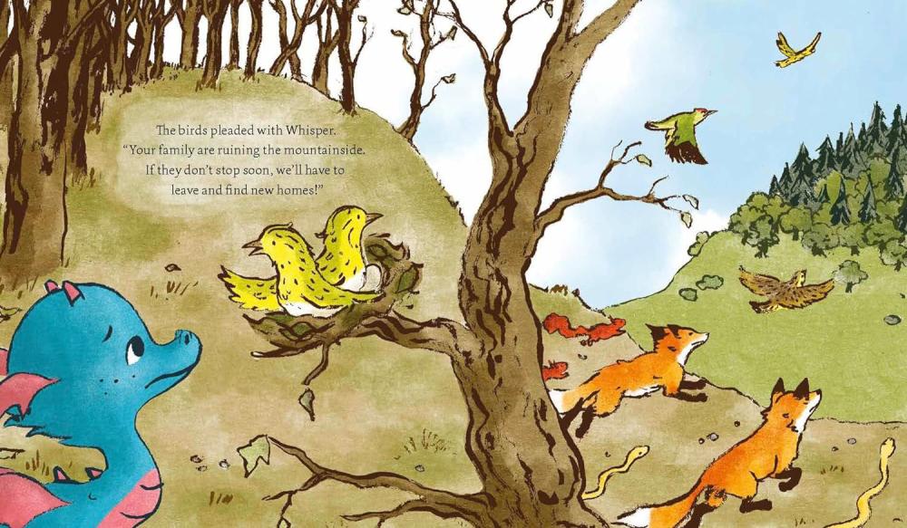 Whisper is a quiet dragon who notices everything. When he sees that his family's fires are damaging their forest neighbourhood, he knows he must persuade them to change their ways. But nobody will listen to him. How will he get his message across? It will take all Whisper's resourcefulness and courage, and some help from his friends, to save the mountainside in time.