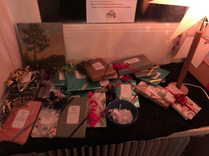 Julklappslekar är det många som ägnar sig åt, och på bokhandeln bestämde vi oss för att prova en egen variant i år. Reglerna var enkla, alla i personalen som ville vara med valde en bok eller ett seriealbum de verkligen gillar och skrev en kort motivering eller rim.  När allt väl var inslaget slumpades paketen ut bland alla som deltagit. Många bra böcker och serier blev det, både klassiker och nya, och vi i personalen fick trevlig julläsning att se fram emot.